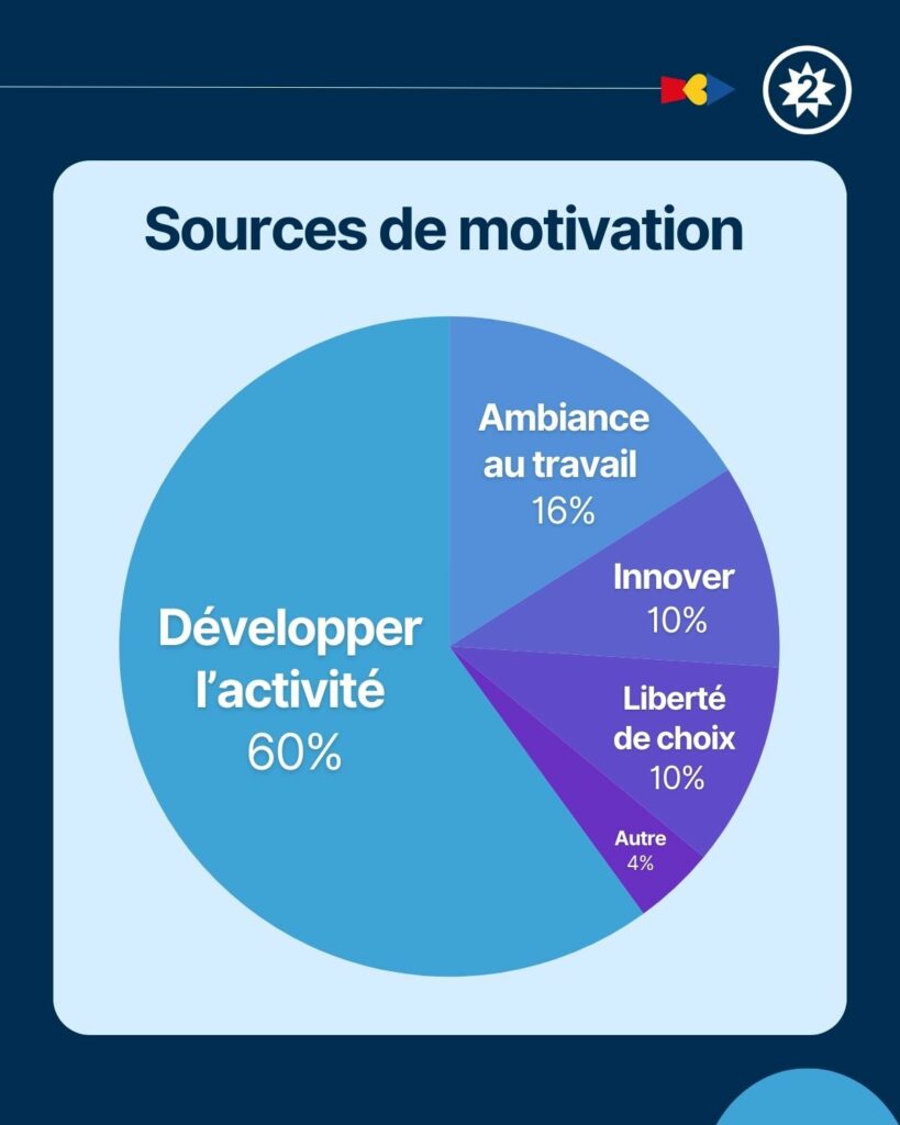 60% sont motivés par le développement du chiffre d’affaires…Atteindre des objectifs financiers, assurer la pérennité de l’entreprise et voir les résultats concrets de leur travail sont des éléments moteurs selon eux.