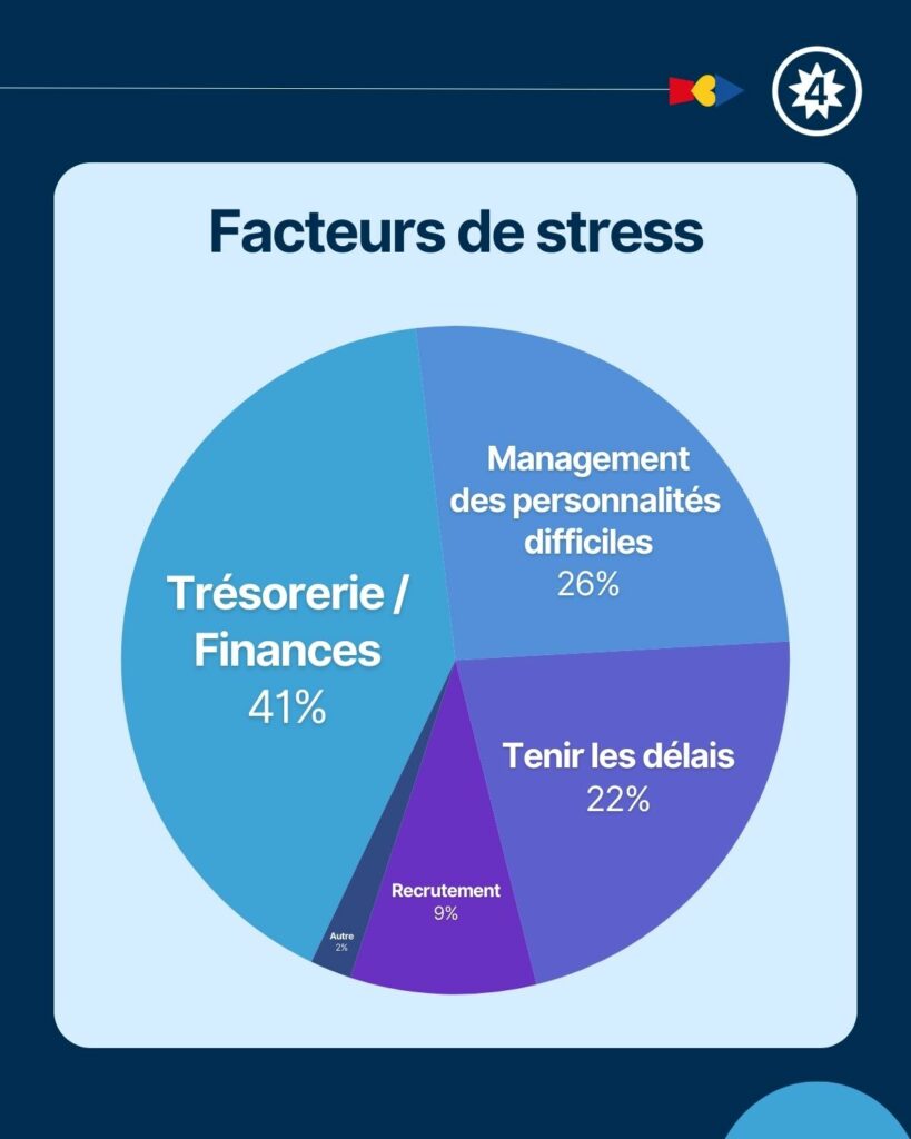 41% stressent à cause des finances. La trésorerie, c’est comme la météo : on préfère quand c’est stable. Osez exprimer vos préoccupations à vos salariés. Leur soutien vous aidera à maintenir un moral au beau fixe !
